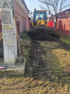 Ieșind în curte, femeia a observat un buldo-excavator și mai multe vehicule aparținând Primăriei, precum și o echipă de muncitori care lucra la amenajarea unei alei de acces către strada Cerbului.