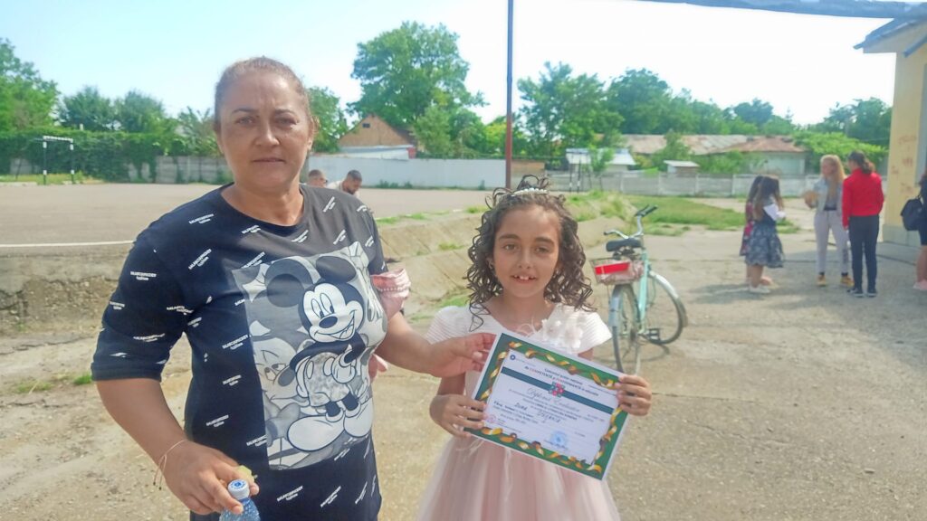 La festivitatea de sfârșit de an, desfășurată miercuri, 8 iunie, au venit să le fie alături copiilor din clasele primare și câțiva părinți care sunt colegi de școală primară cu micuții. Printre aceștia s-a aflat și Ionela Dura, mama unei fetițe care a obținut premiul I.
