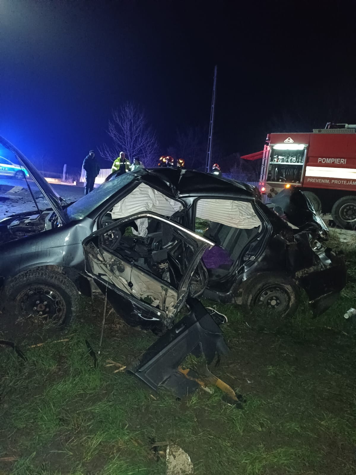 La locul accidentului, pompierii au găsit o persoană încarcerată, o alta blocată în interiorul autoturismului, iar o alta, la o distanță de zece metri, semiconștientă, cu răni foarte grave.
