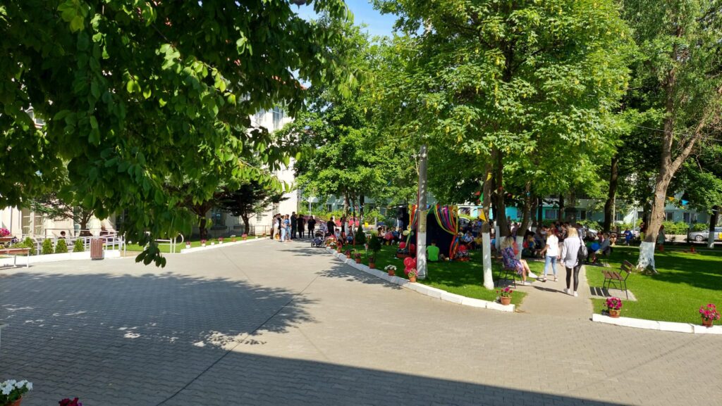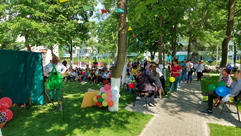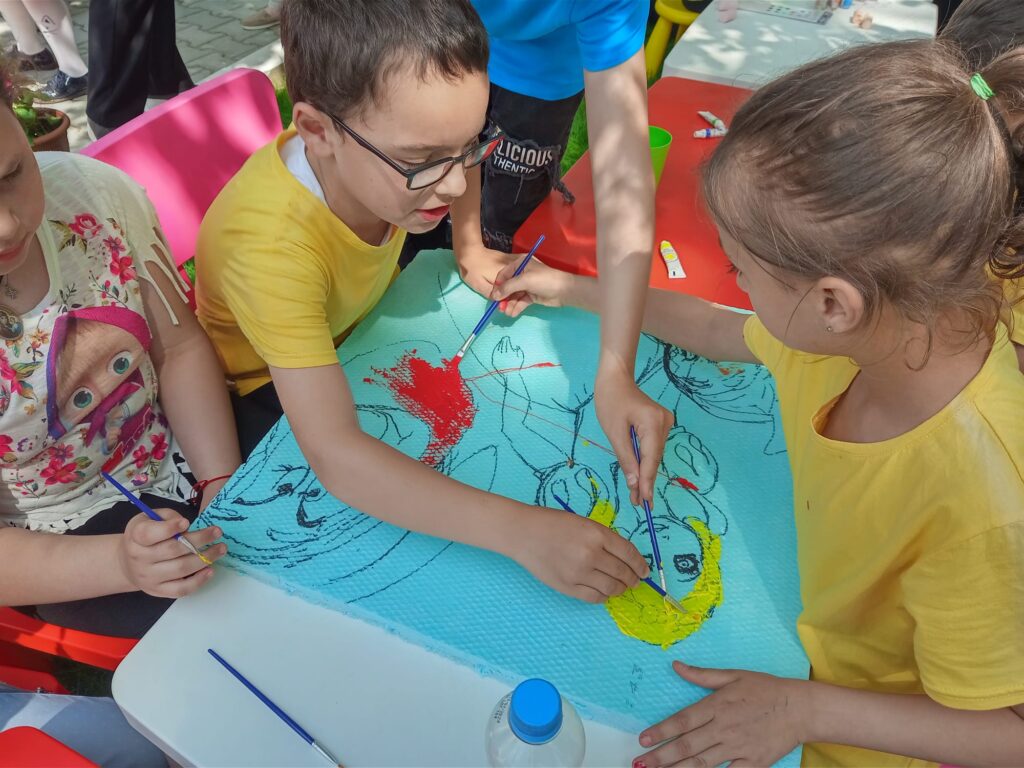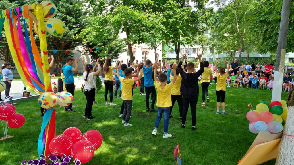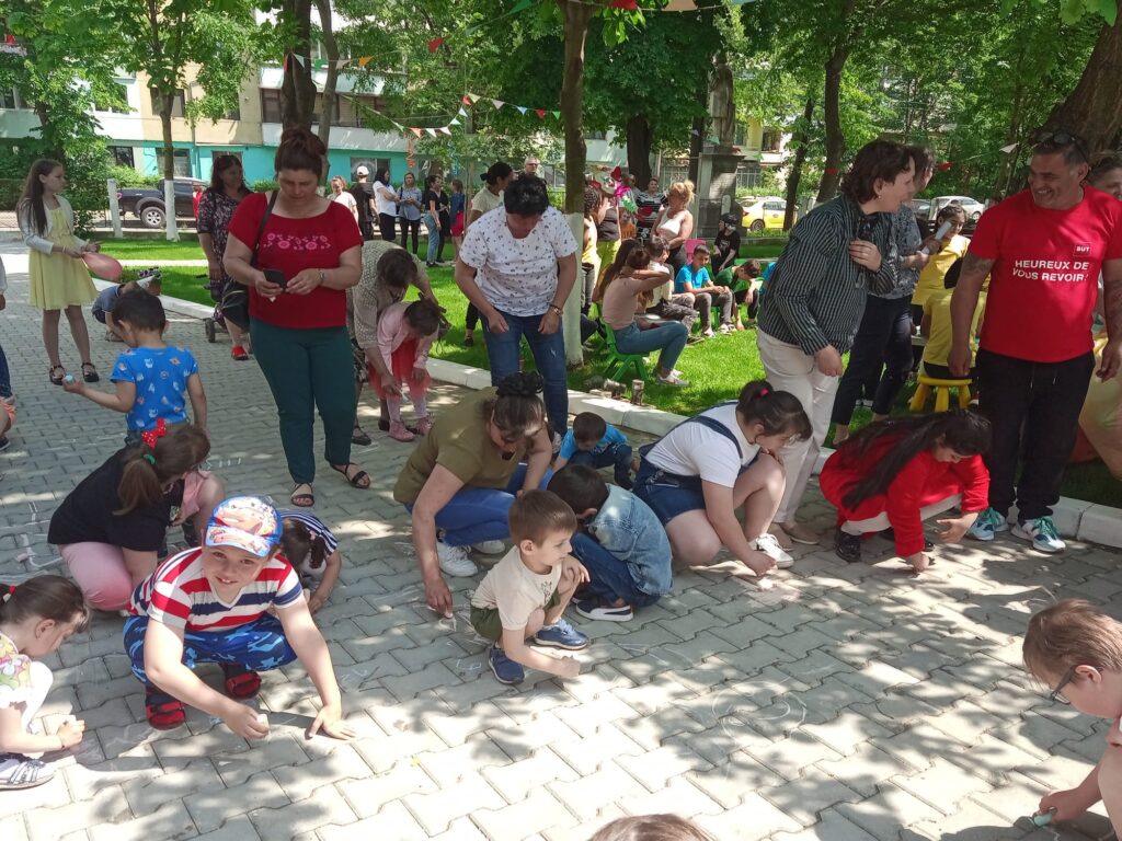 Astfel, copiii beneficiari ai Centrului de Zi au susținut un program artistic cu cântece, poezii și dans și au fost antrenați în diferite jocuri asociate cu mișcare: joc de atenție și memorie vizual-auditivă, jocuri cu mingea, jocuri cu baloane. De asemenea, au desenat cu cretă pe asfalt și au pictat în aer liber.