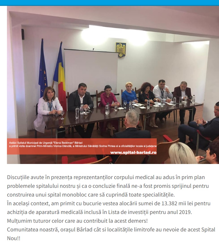 La acea dată, cu banii alocați au fost achiziționate console și s-a modernizat stația de oxigen de care unitatea nevoie urgentă, dar și echipamente medicale pe care spitalul le-a solicitat. De fapt, acea alocare uriașă de la Ministerul Sănătății, în 2019, s-a făcut în urma vizitei pe care premierul Dăncilă a efectuat-o la spitalul din Bârlad, la care primarul Boroș nu a fost prezent.