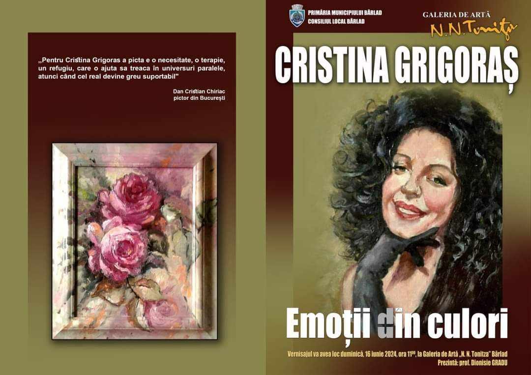 Galeria de Artă „N. N. Tonitza” din Bârlad a primit ieri cu generozitate iubitorii de artă plastică, ce au dorit să fie alături de pictorița bârlădeană Cristina Grigoraș și lucrările sale, prezentate în expoziția personală „Emoții din culori”. Câteva zeci de pasionați de pictură au pășit pragul galeriei de artă, pentru a participa la vernisajul expoziției Cristinei Grigoraș.