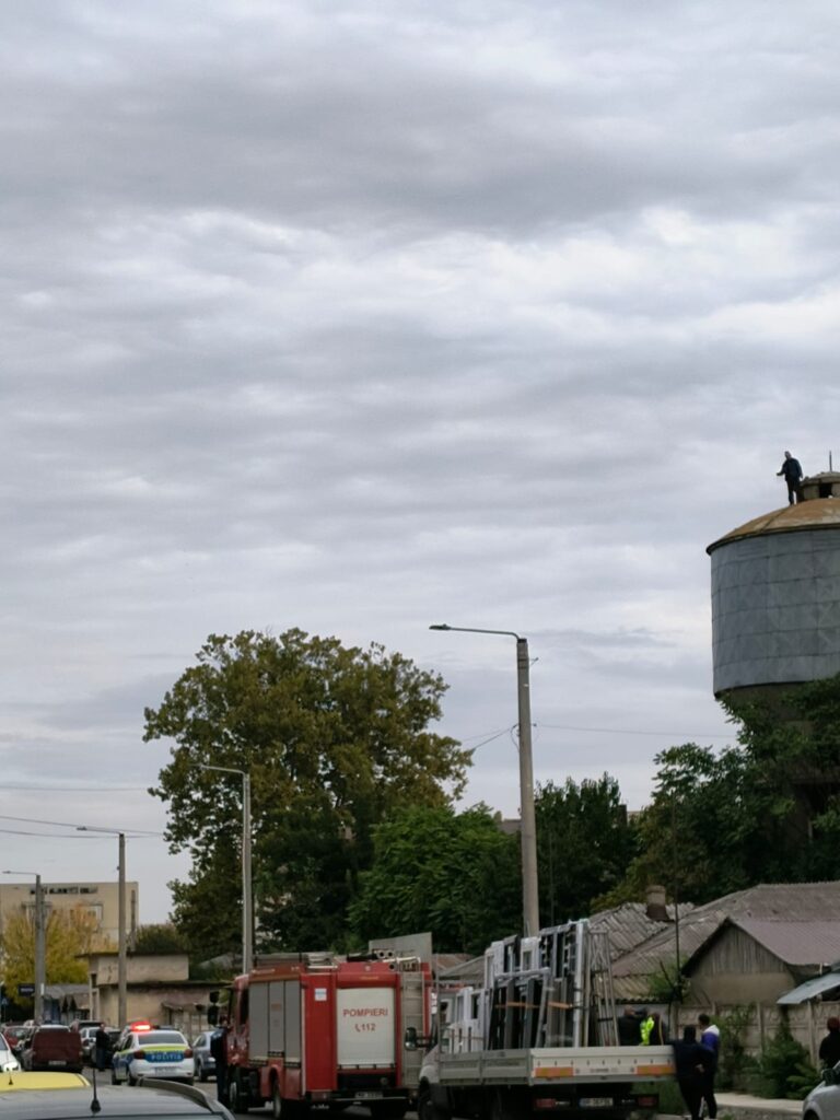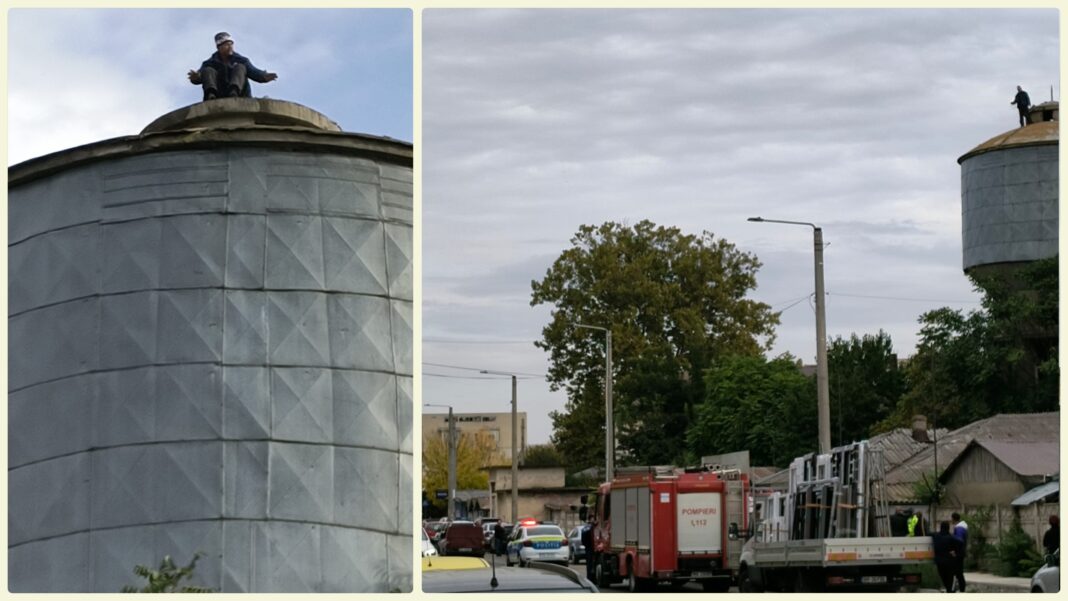 După aproximativ trei ore, în care a stat cocoțat pe turnul de apă aflat în apropierea Gării din Bârlad, Marcel R., de 50 de ani, care amenința că se aruncă în gol, a coborât fără a fi nevoie de intervenția pompierilor.