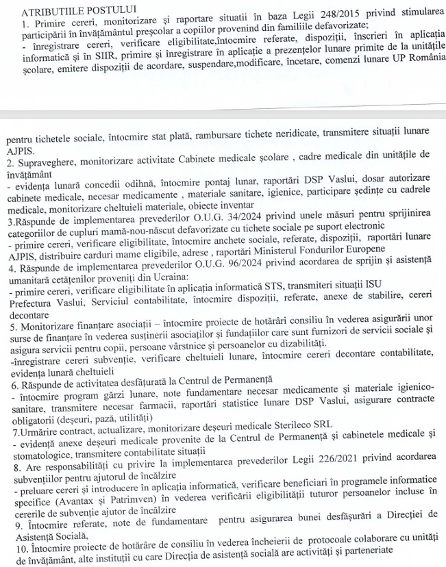 E puțin ciudat totuși că Primăria caută un economist pentru acest post, în condițiile în care atribuțiile sunt cu precădere din domeniul asistenței sociale.