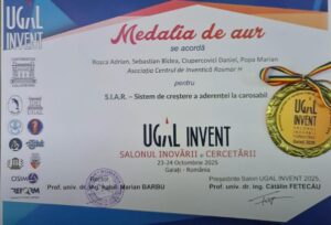 Echipa Centrului de inventică Rosmar H, condusă de bârlădeanul Adrian Roșca, a fost premiată cu medalia de aur la Salonul Inovării și Cercetării UGAL Invent, ediția a VII-a.