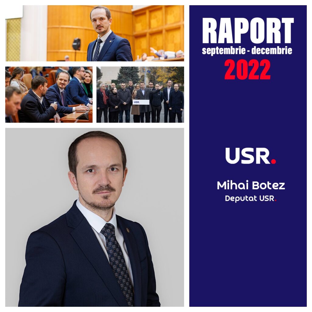 Pentru raportul actual, îi invit pe toți să acceseze link-ul https://mihaibotez.ro/raport-de-activitate-septembrie-decembrie-2022/, unde îl vor putea lectura.”, a declarat deputatul Mihai Botez.