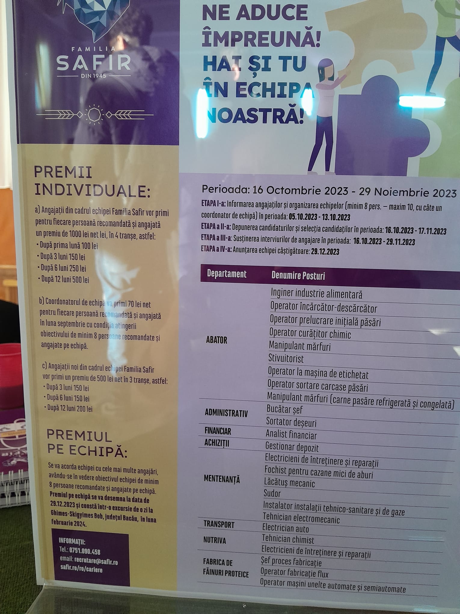 Elena Gontaru, de la serviciul de Resurse Umane al societății Safir, spune că firma are nevoie urgentă de personal. Caută în special inginer în industria alimentară pentru Vaslui și întâmpină dificultăți în găsirea unui specialist pentru acest post.
