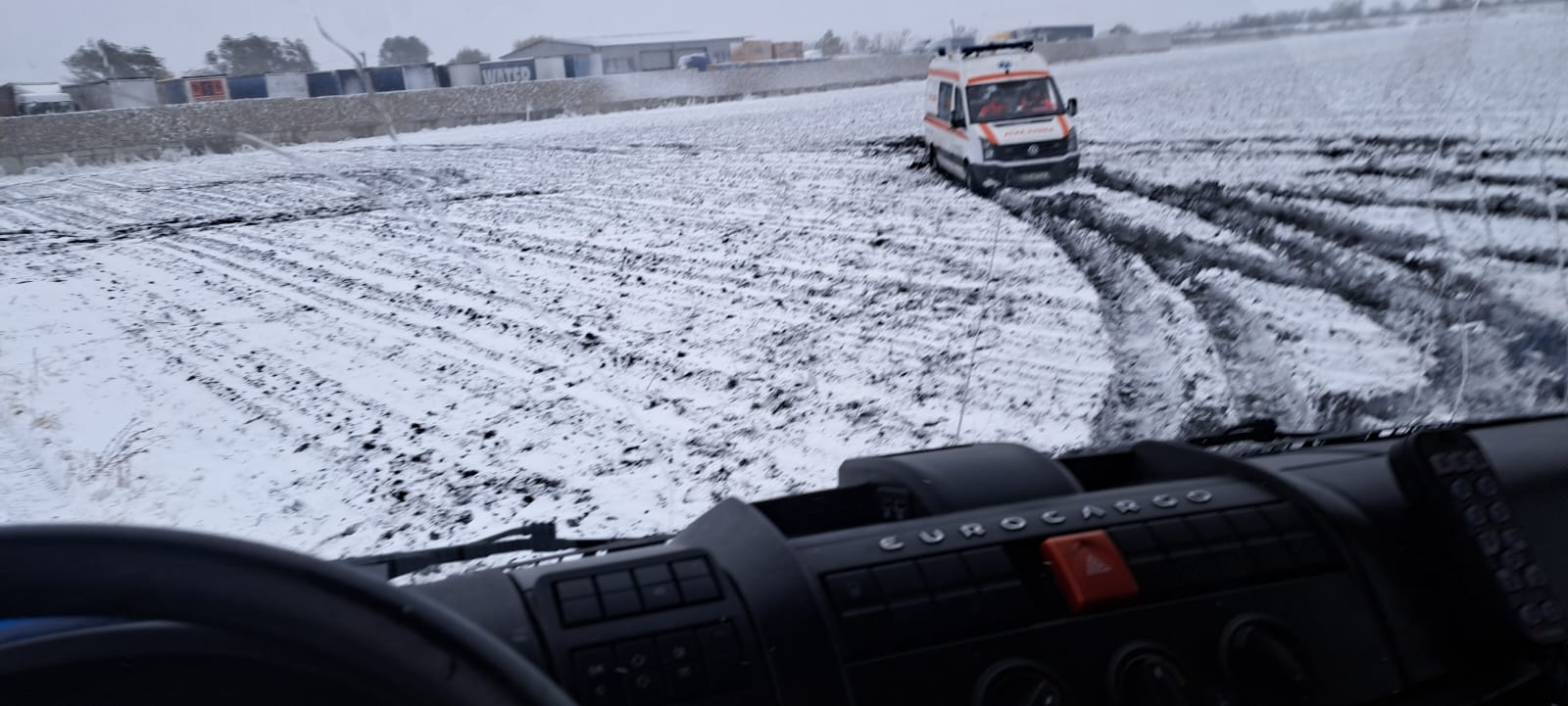 Pompierii bârlădeni au scos ambulanța din zăpadă, a transmis Marius Stanciu, purtător de cuvânt al ISU Vaslui.