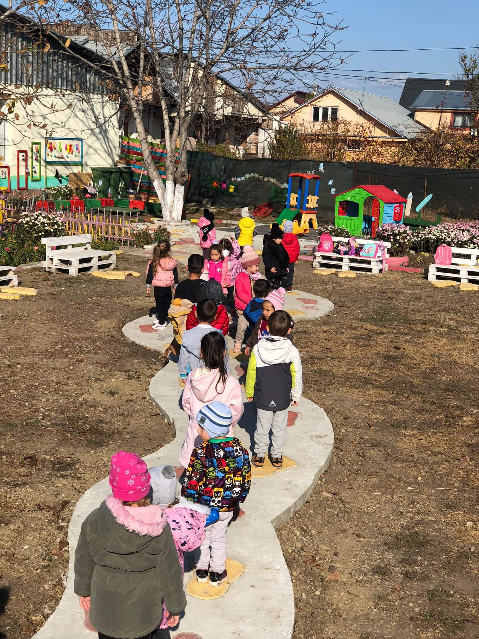 După ce, în vară, Grădinița a primit sponsorizări de la SC Crismih și fotograful bârlădean Cristi Apostol, cu ajutorul cărora au fost confecționate băncuțe din paleți, mai multe firme și persoane fizice s-au implicat pentru amenajarea unei alei de la poartă până la intrarea în grădiniță.