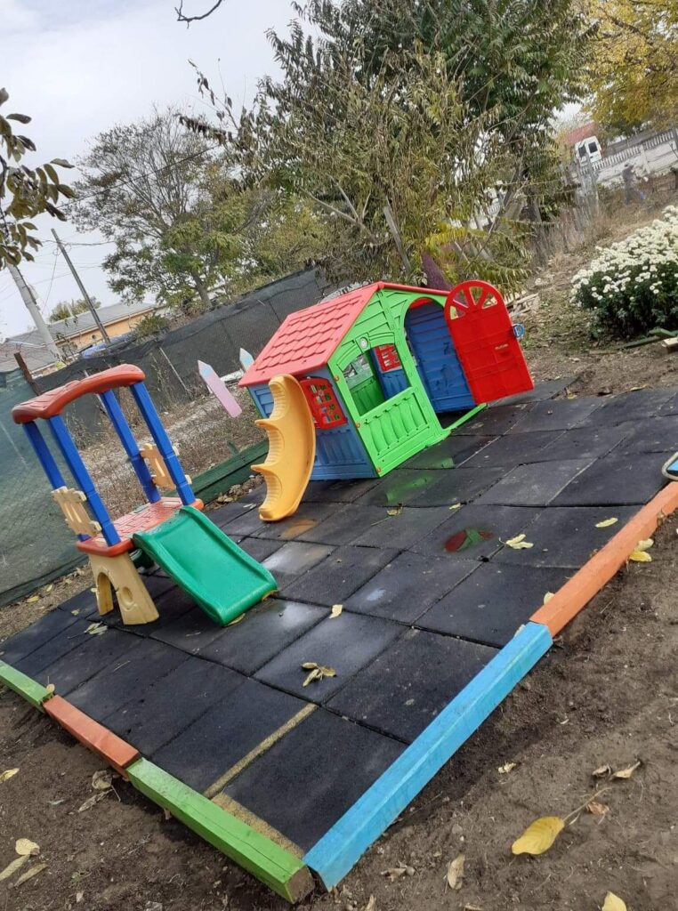 Copiii de la Grădinița cu program normal nr. 19 din Bârlad au, de câteva zile, o alee adecvată jocului și bucuriei și un loc de joacă îmbunătățit prin pardosirea cu dale de cauciuc.