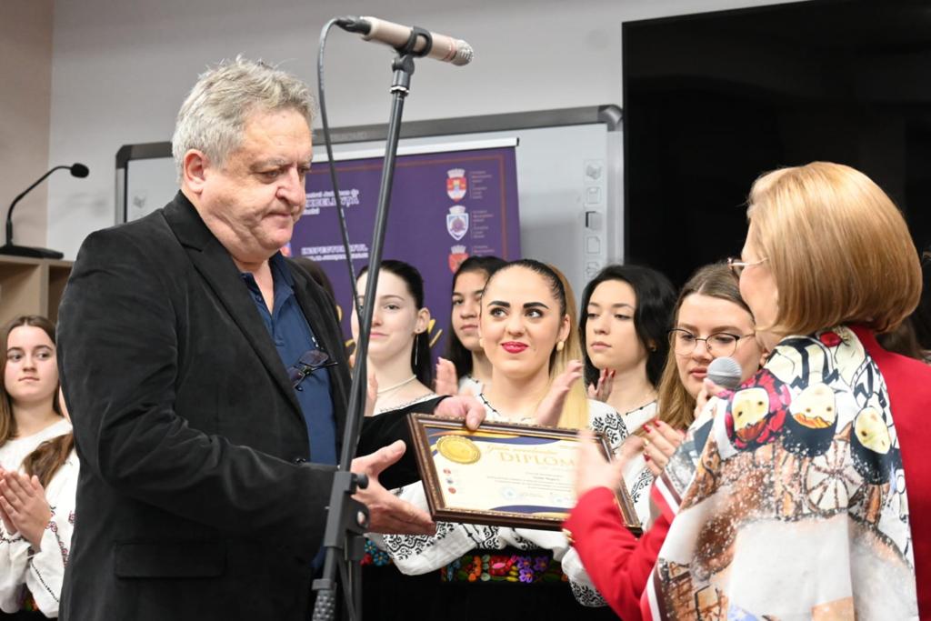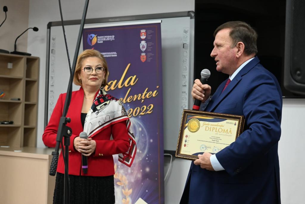 Prof. Gabriela Plăcintă, amfitrioana evenimentului, a oferit tuturor acestor invitați diplome de excelență, precum și celorlalți doi primari care au lipsit, cel al Bârladului și cel al Hușilor.