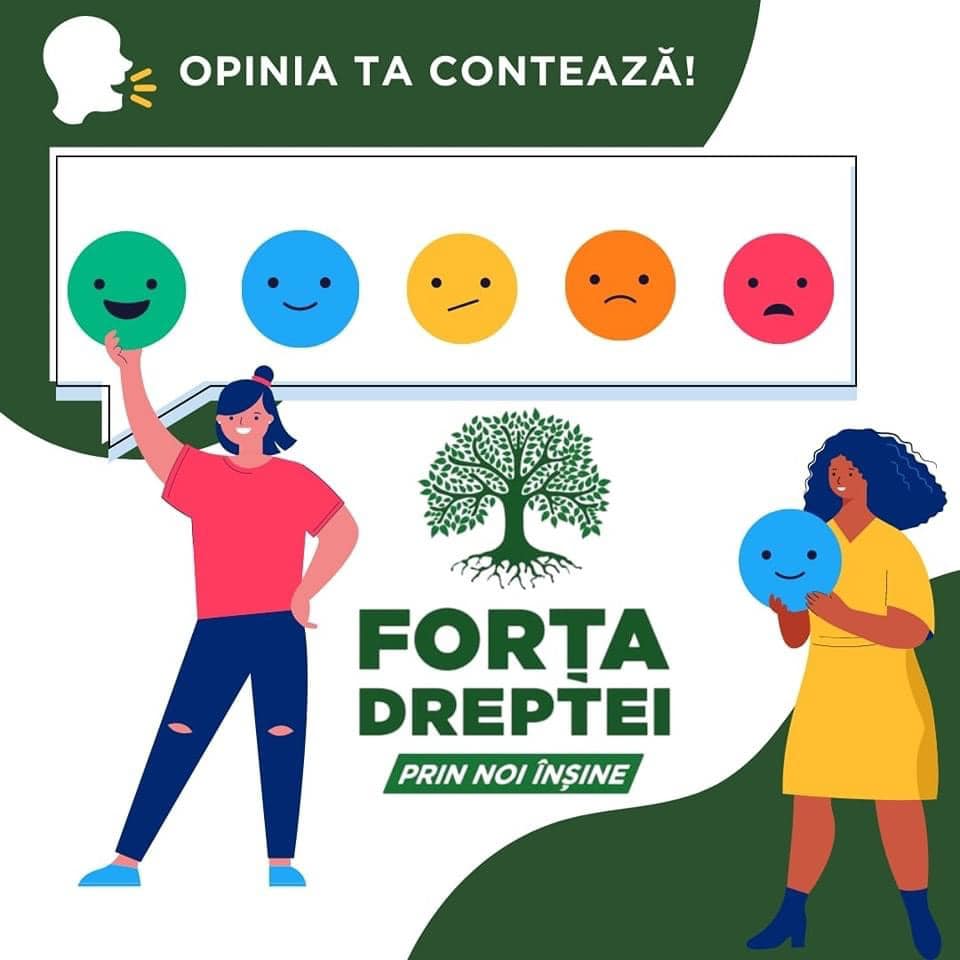 „În construirea viitorului, Vocea tinerilor contează! Să fim activi și să fim generatorii vieții pe care ne-o dorim pentru copiii noștri. Lansăm astfel, invitația de a participa la un scurt sondaj de opinie destinat tinerilor cu vârste cuprinse între 18 și 35 de ani, prin care ne dorim să obținem promovarea și susținerea dialogului constructiv cu autoritățile locale.”, a transmis Marius Arcăleanu, președintele Forța Dreptei Vaslui.