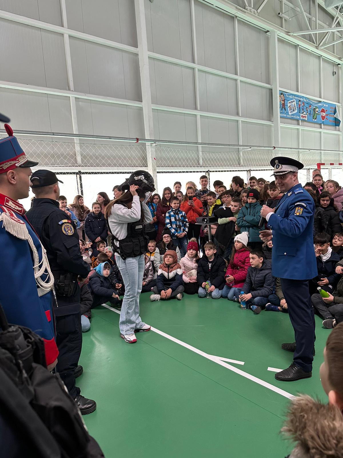 Tot cu această ocazie, copiilor le-a fost prezentată dotarea specifică jandarmilor și autospecialele folosite pe timpul misiunilor.