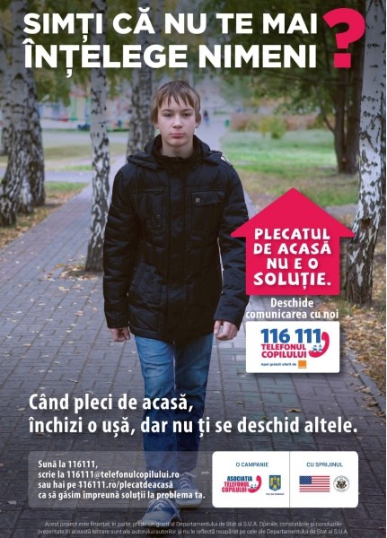 În perioada mai – septembrie 2023, Poliția Română, prin structurile de prevenire a criminalității, a derulat, la nivel național, proiectul de prevenire a disparițiilor de minori și a plecărilor voluntare „Plecatul de acasă nu e o soluție!”, în parteneriat cu Asociația Telefonul Copilului, cu sprijinul Ambasadei SUA în România. Scopul proiectului a fost creșterea gradului de conștientizare cu privire la riscurile asociate plecărilor voluntare din familie și centrele de protecție.