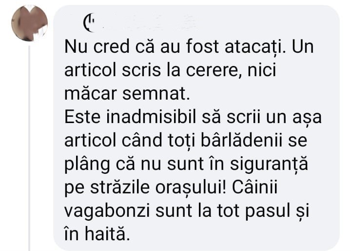 Problema nu e una noua. Nu știu dacă erau 30 de hingheri dar în Bârlad totul e posibil.E foarte plauzibil sa fi fost alungați cu pietre ,nu că asta ar explica eșecul de până acum.Eu vad tot timpul oameni foarte agresivi in mediul online care înjură sau vorbesc urât celor care îndrăznesc să se plângă de problema câinilor fără stăpân..”Jegurilor dati-le ceva de mâncare în loc să ii postați pe net”.”Nemernici sunt aia care îi fotografiază” sunt doar câteva din comentariile pe care le-am văzut .Eu personal era cat pe ce sa fiu atacat de o haită formata din 8 câini pe care i-am numărat dar nu știu câți mai erau prin boscheți ,asta in Gradina Publică.M-am trezit deodată înconjurat de câini.Nu știu ce s-ar fi întâmplat dacă era un copil în locul meu.