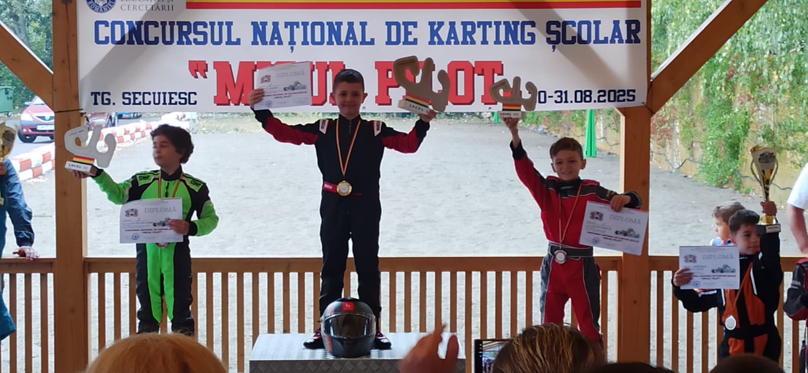 Premieră pentru Cercul de Karting din cadrul Clubului Copiilor „Spiru Haret” din Bârlad. Vladimir Ioan (8 ani) a reușit să câștige titlul de campion național la categoria Bambini Open (6-8 ani). Cu un kart cu motor de 50 cc, Vladimir a reușit să aibă un parcurs remarcabil, la finalul celor cinci etape ale Concursului Național de Karting Școlar – „Micul Pilot”, ediția 2025.