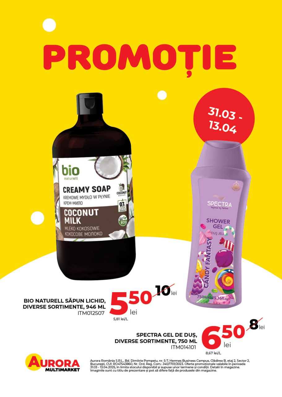 Primăvara este momentul perfect pentru a-ți reîmprospăta locuința, iar la Aurora Multimarket găsești produse de curățenie cu reduceri de până la 50%. Fie că ai nevoie de detergenți, soluții de curățare, bureți sau lavete, ai la dispoziție o gamă variată de produse eficiente și accesibile!