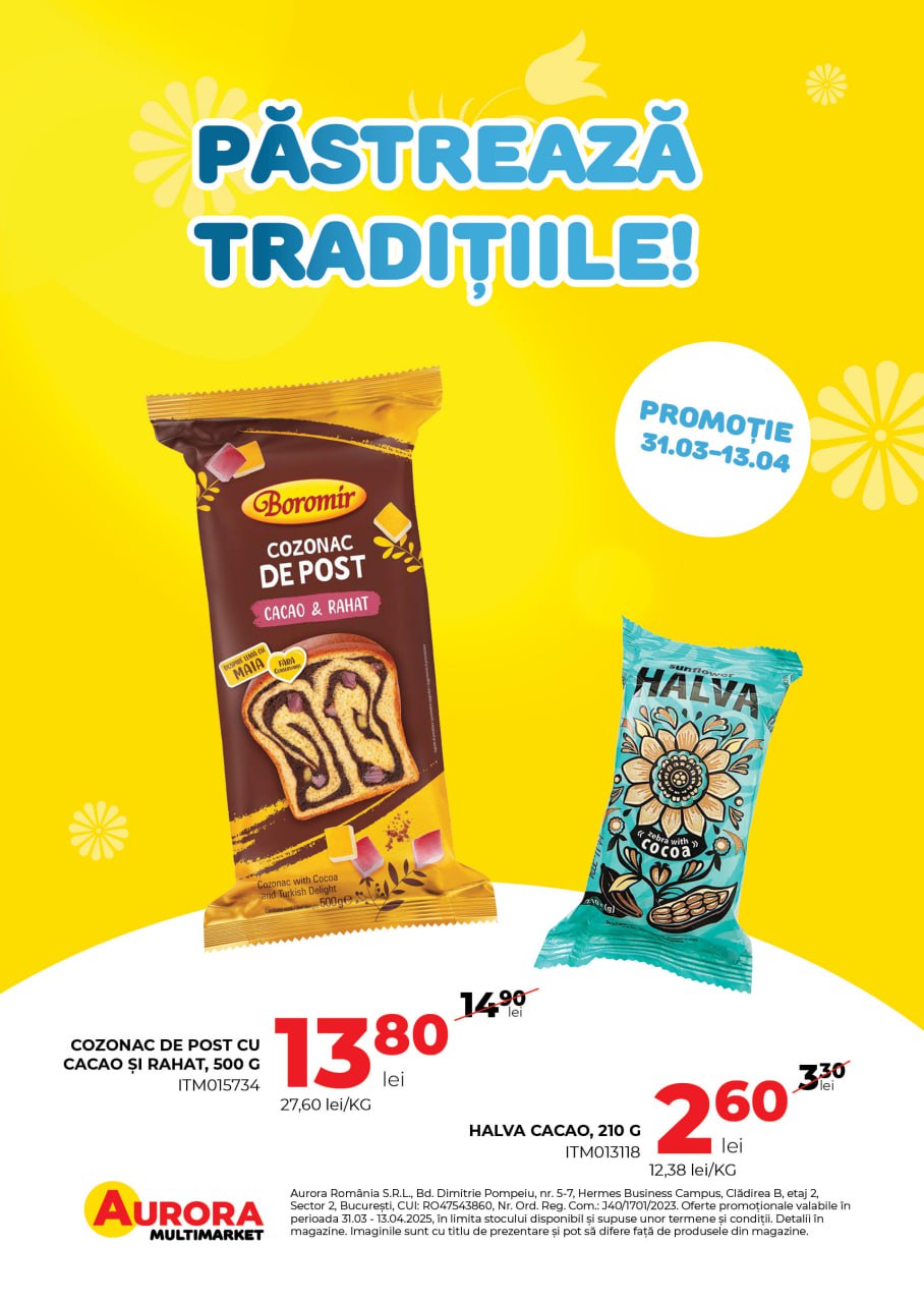 La Aurora Multimarket, fiecare sezon este un prilej de bucurie, iar primăvara aduce nu doar soare, ci și oferte speciale! Din 25 martie, dăm startul campaniei „Curățenia de Primăvară”, cu reduceri de până la 50% la produsele care îți transformă casa într-un loc proaspăt și primitor. Apoi, din 4 aprilie, te invităm să intri în atmosfera sărbătorilor pascale unde vei găsi tot ce ai nevoie pentru a crea momente speciale alături de cei dragi!