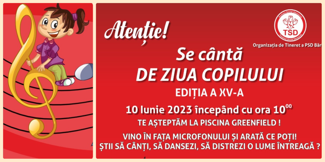 Au început înscrierile pentru cea de-a XV-a ediție a concursului „Atenție! Se cântă de Ziua Copilului”, care, în acest an, se va desfășura pe 10 iunie, cu începere de la ora 10, la piscina Greenfield.