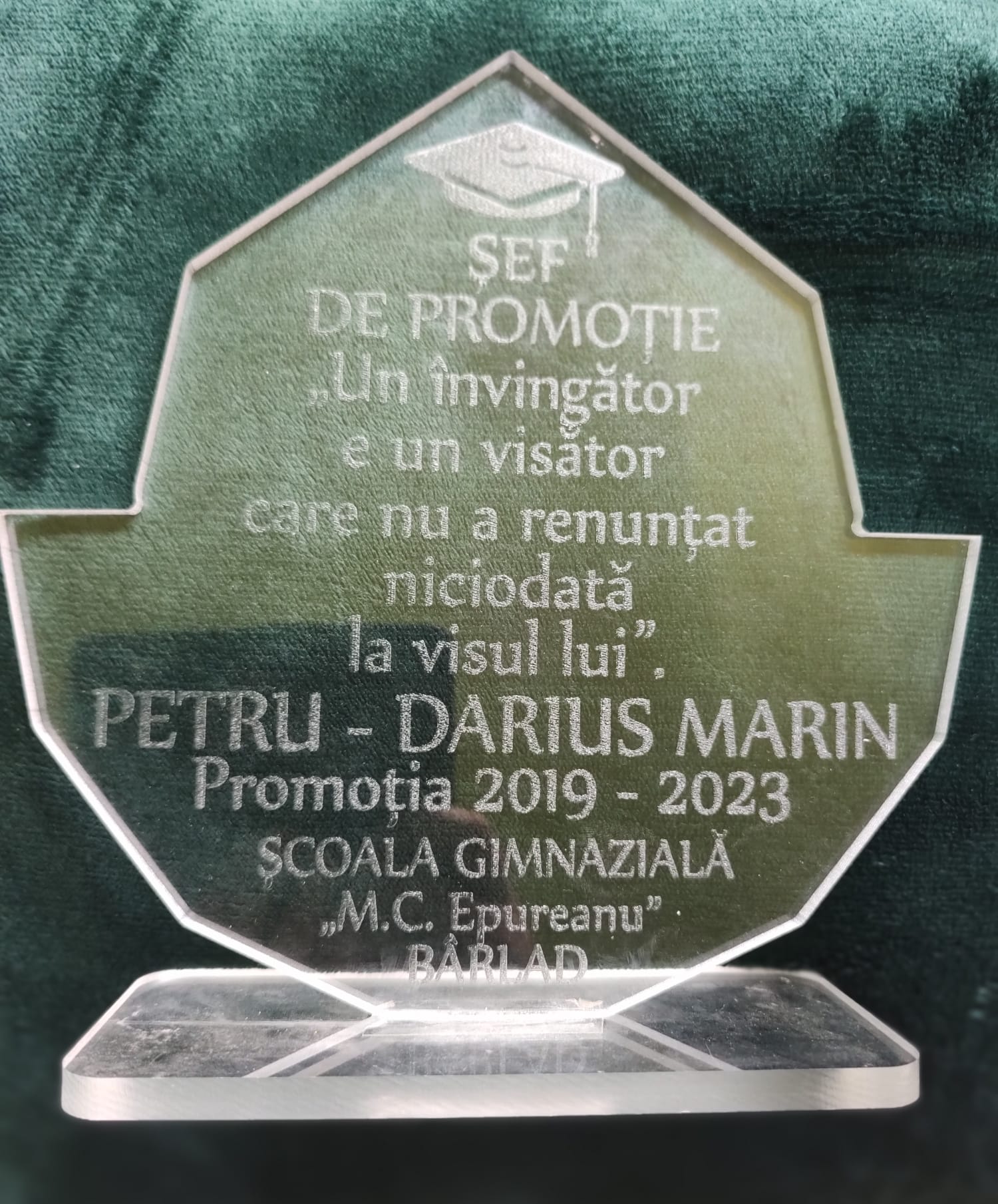 Darius Petru Marin este șeful de promoție al Școlii Gimnaziale „Manolache Costache Epureanu” din Bârlad, absolvind gimnaziul cu media 10. Darius este tipul de elev care nu învață din obligație, ci din conștiință și care reușește, în paralel cu performanțele școlare, să se bucure de adolescență, petrecând un timp liber de calitate.