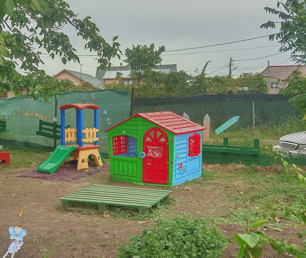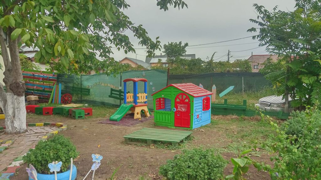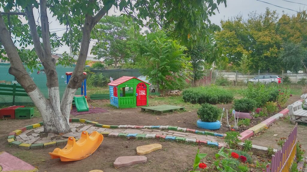 Din păcate, curtea acestei grădinițe situate în cartierul Munteni nu este asfaltată, iar odată cu venirea ploilor, copiii își vor murdări de noroi încălțările. Există promisiuni din partea unei firme din Grivița, pentru asfaltarea curții, dar și promisiuni pentru dale pe care copiii să poată păși fără să se murdărească.