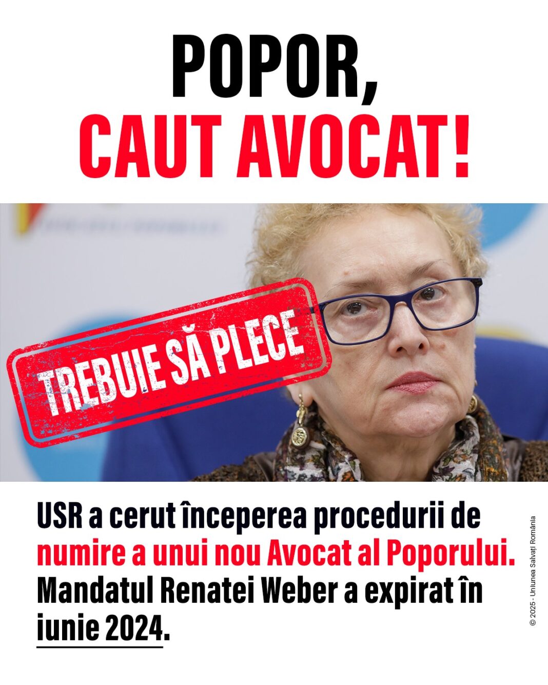 USR cere tuturor forțelor democratice din Parlament să pună capăt acestui abuz rușinos și să numească imediat un nou Avocat al Poporului, desemnat pe criterii de competență și integritate astfel încât această instituție să nu mai fie folosită ca o unealtă a puterii, implicată în jocuri de culise.